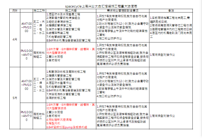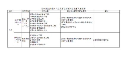 SpcaeCycle上海店我們和業(yè)主溝通完,項(xiàng)目的施工進(jìn)度表是這樣安排的,